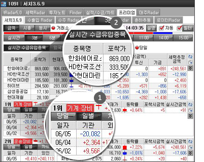 금액/시총/동시 버튼을 활용해 보세요! - ②서치3.6.9는 매매가 집중되는 장초반에는 더 꼼꼼하게 분석하여 줍니다.