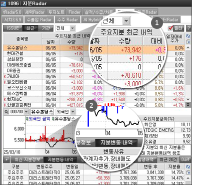 주가등락을 추적하여 제공하는 서비스입니다. - Point 2 지분Radar는 기업 사정을 보다 잘 아는 최대주주,