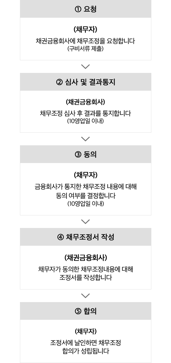 1. 1. 요청 : (채무자) 채권금융회사에 채무조정을 요청합니다.(구비서류 제출)