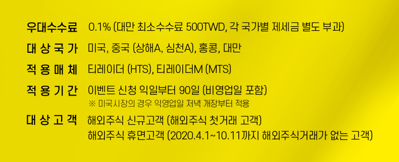 - 이벤트 신청 익일부터 90일(비영업일 포함) ※미국시장의 경우 익영업일 저녁 개장부터 적용