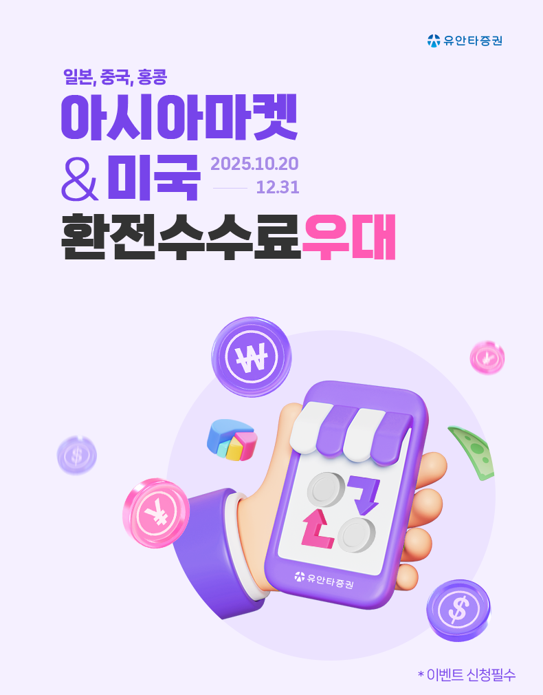 - 본 이벤트는 해외주식 거래시 발생하는 환전수수료 부담을 덜어드리고자 진행하는 이벤트로 환차익 목적의 반복환전으로 판단 될 경우, 당사의 판단에 따라 환전혜택이 제한될 수 있습니다.