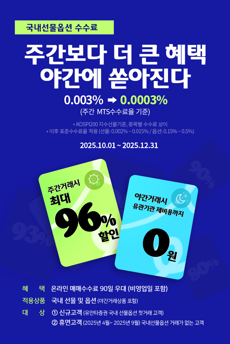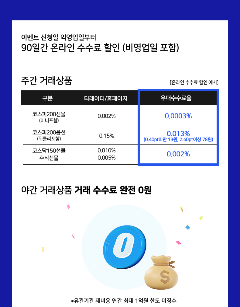 - 적용상품 : 국내 선물 및 옵션 (야간거래상품 포함)