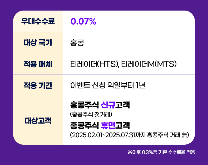 - 홍콩주식 휴면고객 (2025.02.01~2025.07.31까지 홍콩주식 거래 無)