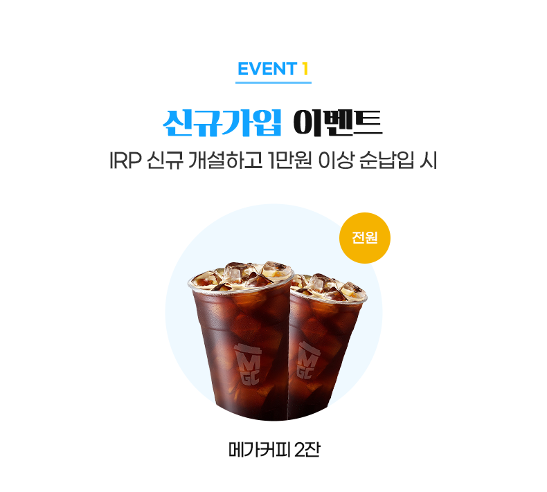 IRP 신규 개설하고 1만원 이상 순납입 시 (메가커피 2잔 전원)