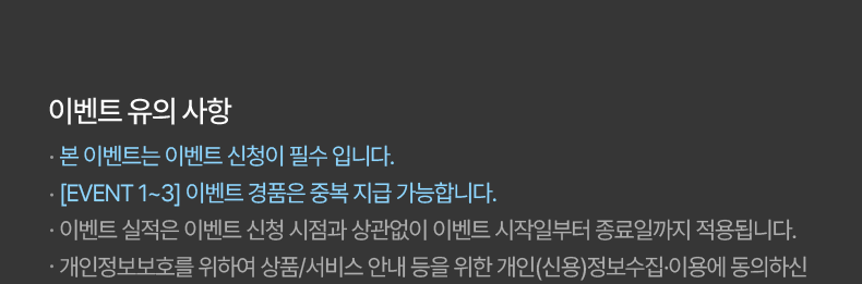 - [EVENT 1~3] 이벤트 경품은 중복 지급 가능합니다.