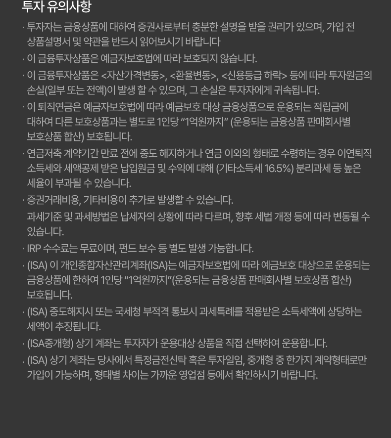 - IRP 수수료는 무료이며, 펀드 보수 등 별도 발생 가능합니다.