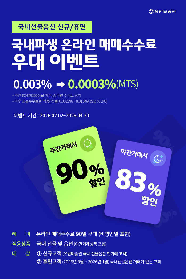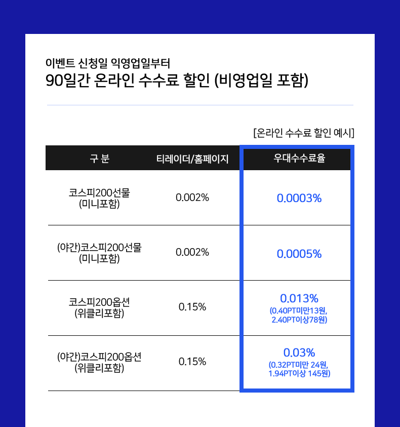 - 적용상품 : 국내 선물 및 옵션 (야간거래상품 포함)
