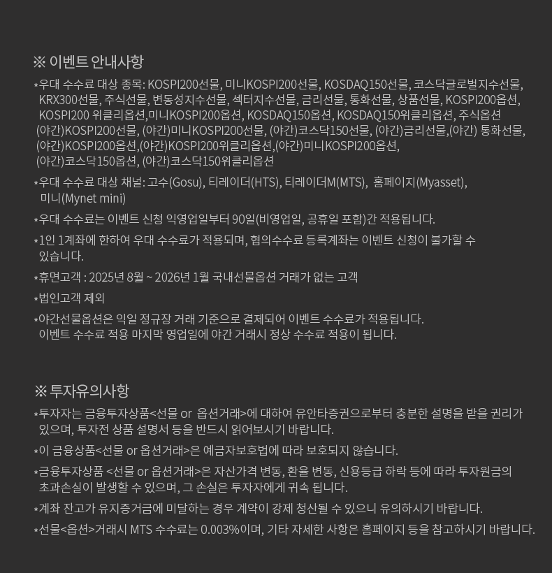 국내파생 온라인 매매수수료 우대 이벤트 0.003% → 0.0003% (MTS)