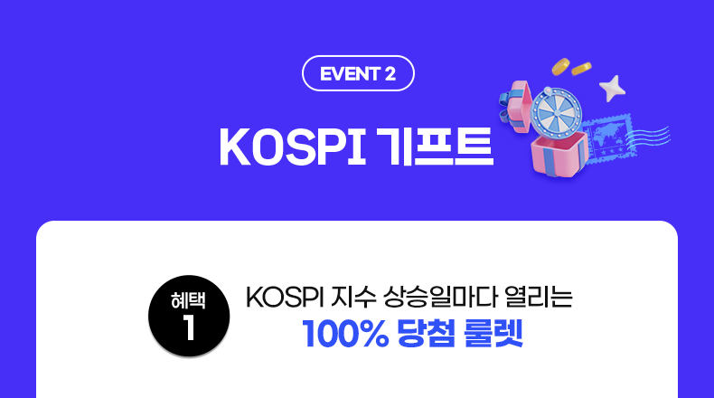 - - 혜택1. KOSPI 지수 상승일마다 열리는 100% 당첨 룰렛