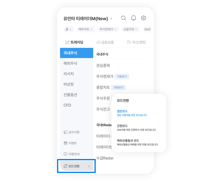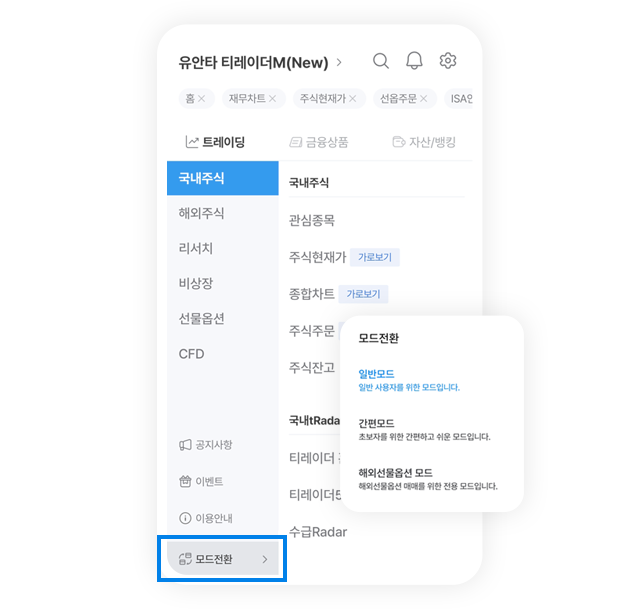 해외파생 거래도 편리하게~ 해외선물옵션모드