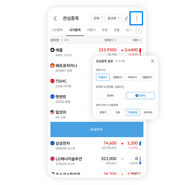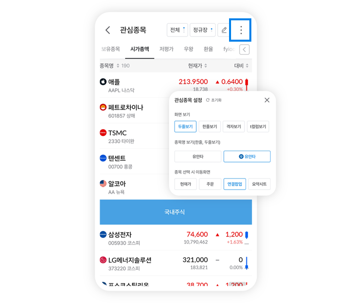 나만의 맞춤 설정으로 관심종목을 편리하게 관리!