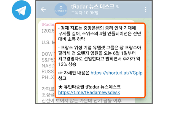 글로벌 마켓 업데이트, 텔레그램 하나로 텔레그램 tRadar 뉴스데스크