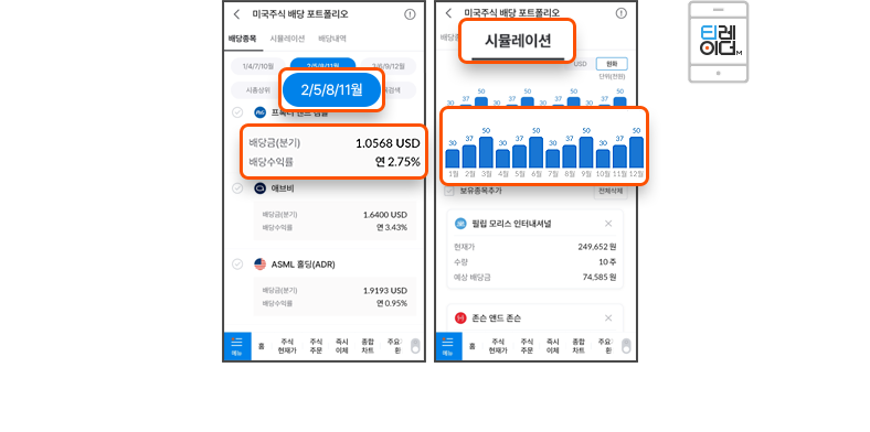 - 티레이더M → 해외주식 → 미국주식 배당 포트폴리오
